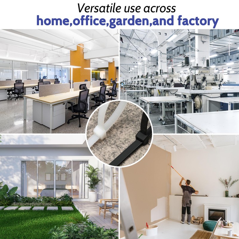 Zip Ties 3.4 * 250mm 200 Pack Plastic Wire Ties for Home,Office,Garden,Workshop,black and white