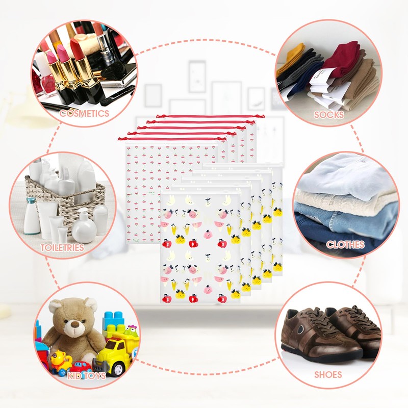 Ziplock Bags for Travel 10Pcs, Plastic Drawstring Bag Waterproof, Cute Reusable Maternity Bag Organiser Pouches, Luggage 0rganiser Pouches for Clothes, Shoes, Cosmetics,Travel Essentials, Toiletries