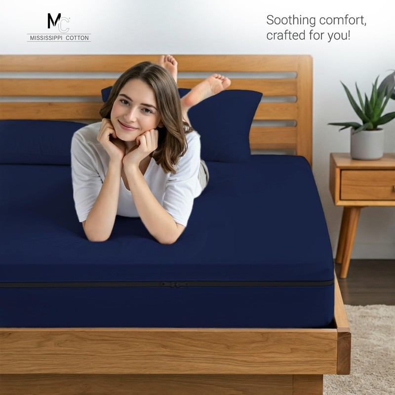- COMFORTABLE DURABLE & VIBRANT COLORS - Create the bedroom of your dreams with MISSISSIPPI COTTON stunning Collection of Vibrant colors And elegant design Sheets. Zipper Fitted Sheet provide you with irresistible comfort, rest and relaxation. Hotel-style luxury, sumptuous softness and classic Look.
