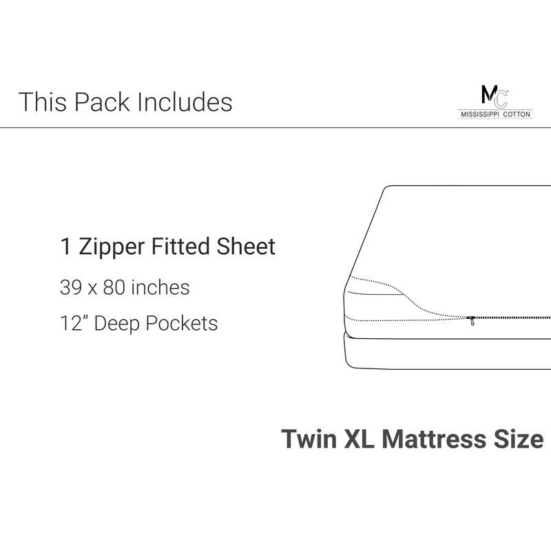 - DEEP POCKET ZIPPER FITTED SHEET - Twin XL Size zipper fitted sheet measuring 39 by 80 inches with a 12 inches that cover the mattress so it doesn’t slip, slide, bunch up, or pop-off at night. The fitted sheet keeps its shape, NO MORE tucking the sheet every day or buying straps or clips.2