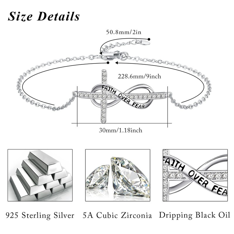 - More Details: Infinity size: 30 mm. Weight: 3.5g. Chain length is 9+2 inch. Fastened with silver lobster clasp. This anklet’s chain is adjustable with extension design, which can fit the wrist sizes 9.4 inch, 10 inch to 10.8 inch