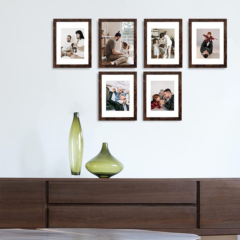 ZIRANLING 8x10 Picture Frame Rustic Brown Wood Set of 6,Display Pictures 5x7 with Mat or 8x10 Without Mat,Multi Photo Frames Collage for Wall or Tabletop Display