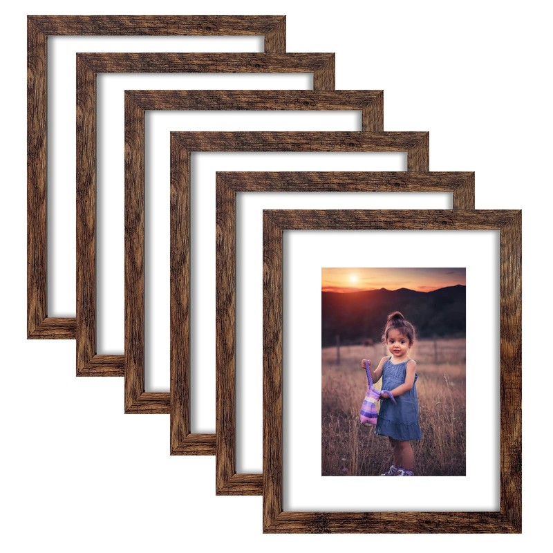 - This 8x10 picture frame rustic brown inter size is 8 L x 10 W x 0.6H inch, display photos 5x7 with mat or 8x10 without mat,includes 1 pack 6 pcs