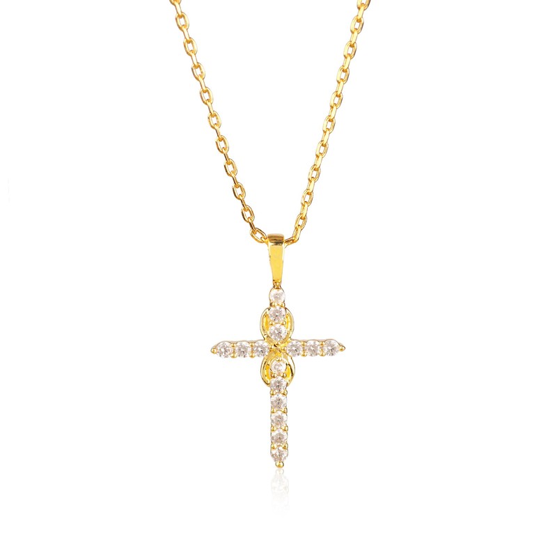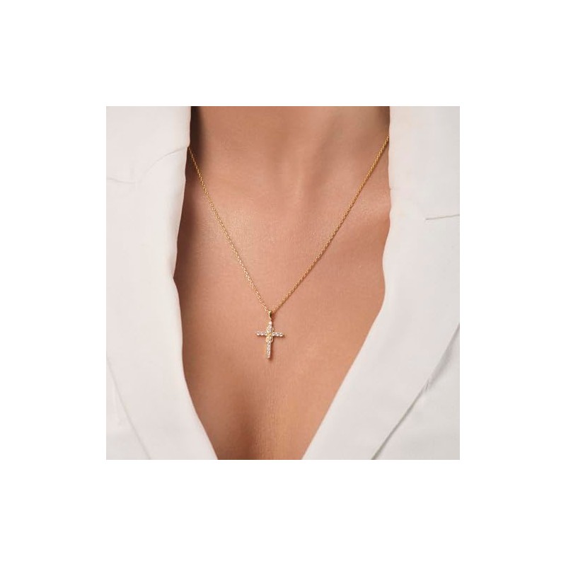 Zircon Stone Studded Cross Necklace for Women 18K Gold Plated Cross Pendant with infinity symbol | Lightweight Adjustable 18K Gold Plated Chain included