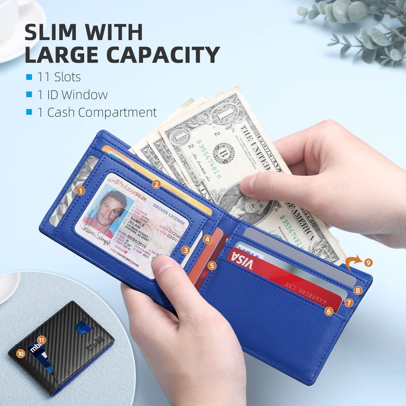 Zitahli Wallet for Men,Mens Wallet,Slim Leather Bifold,RFID Blocking 11 Slots Gift Box