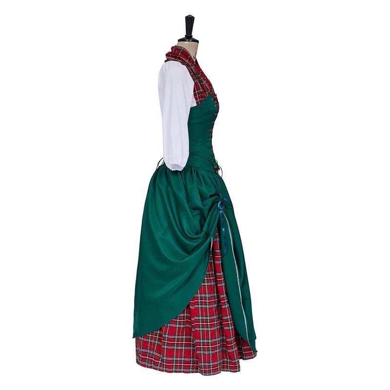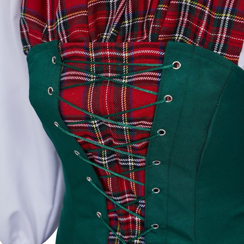 ZIUFVML Christmas Caroler Costume Set Women Highland Scottish Plaid Dress Civil War Southern Belle Costume XS