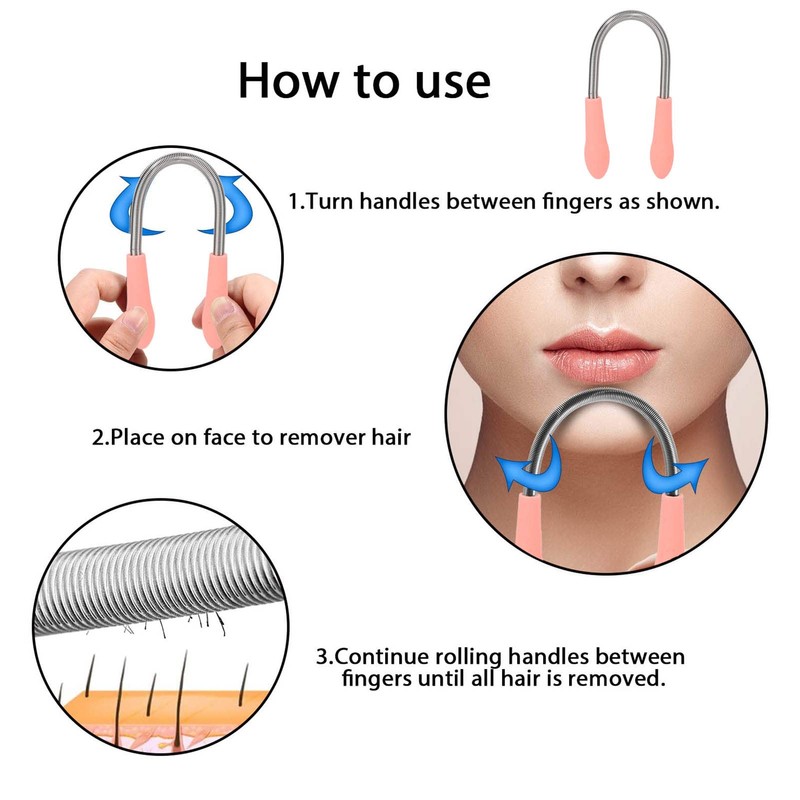 ZJchao Facial Hair Removal Spring, Facial Hair Remover Threading Tool, for Upper Lip Chin Cheeks Women with Flexible Adjustment Multiple Applicable Parts Design Stainless Steel And Plasti