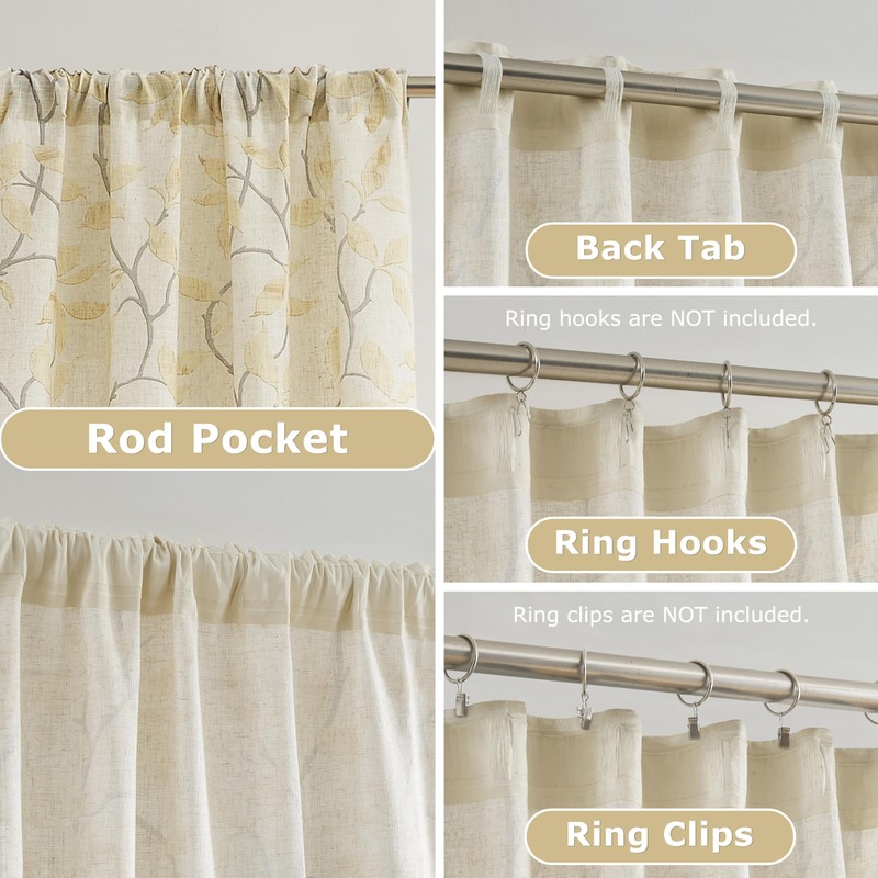 - Top Design: Our curtains are constructed with 3 in 1 functional Tape Top, Back Tabs, rod pockets at ease or pleat but needs extra pin hooks or clip rings. Hooks, clips or rings are not included.