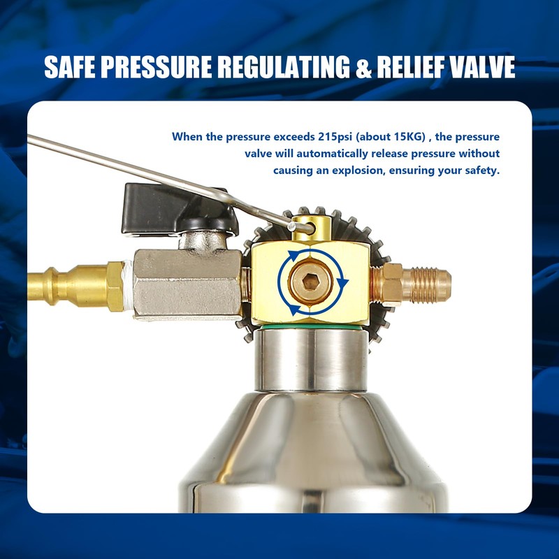 - Durable and Reliable: AC System Flush Kits are constructed of heavy-duty stainless steel tanks. No leaks. The tanks are resistant to high pressure and corrosion and are long-lasting and reusable to withstand years of wear and tear.