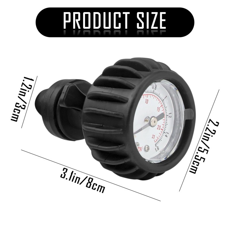 - High Quality Material: The air pump air pressure test gauge is made of high quality material, suitable for all kinds of outdoor environments, can work stably and worry-free for long time use.