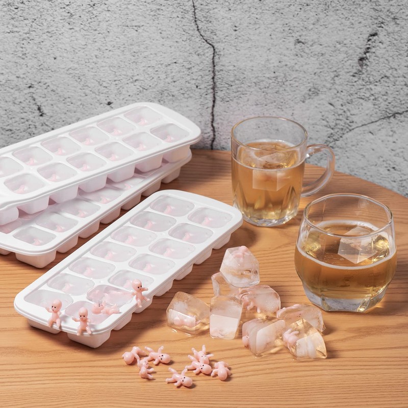 My Water Broke Baby Shower Game with 80 Mini Plastic Babies, 3 Ice Cube Trays and 1 Sign, Used for Ice Baby Shower Games, White