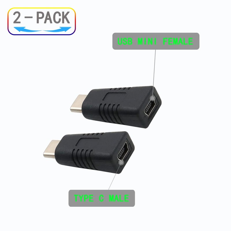 ZJKJHJY Type-C Male to Mini USB Female Adapter [2 Pack]