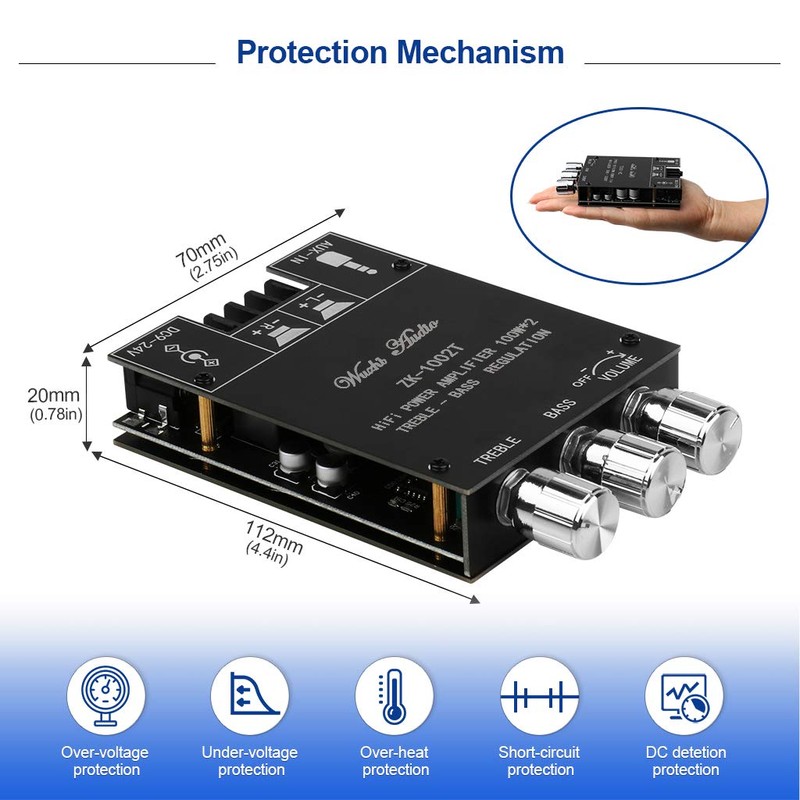 - 【With Protective Function】This Bluetooth Amp module is designed with over-voltage protection, under-voltage protection, over-heat protection, short-circuit protection, with case to protective it