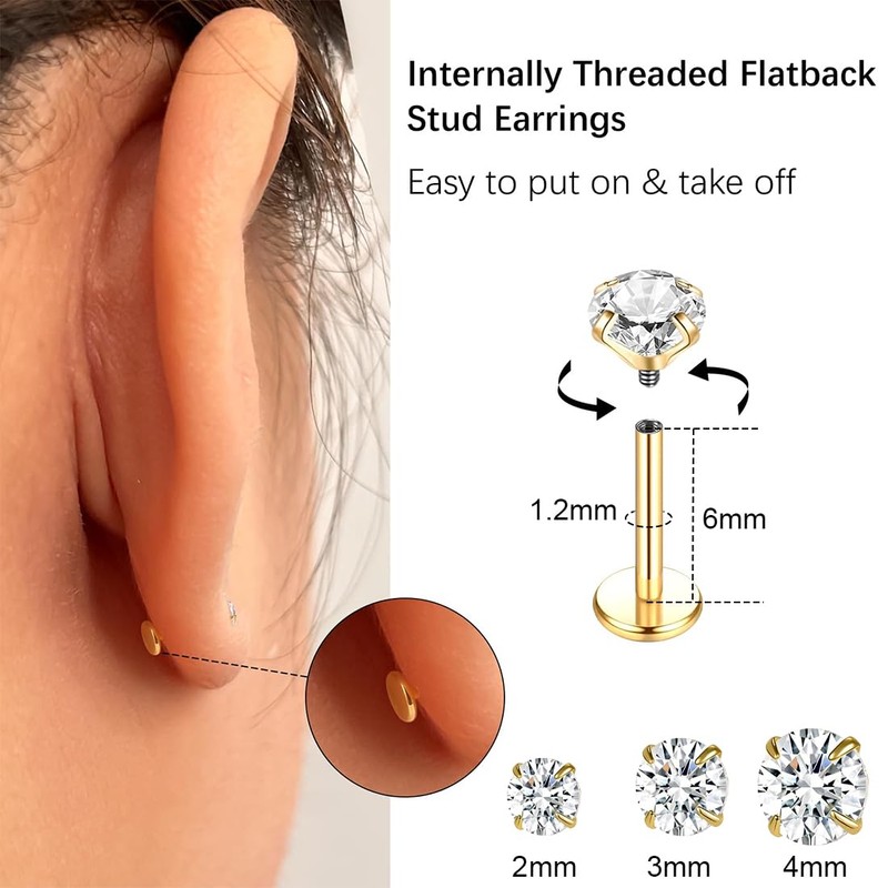 - Outer ear piercing jewellery - One order includes 3 pieces of helix piercings. Made of shiny CZ with internal screws for a comfortable and secure fit. Easy to put on and take off. Excellent quality labial piercing jewellery for all your daily needs.