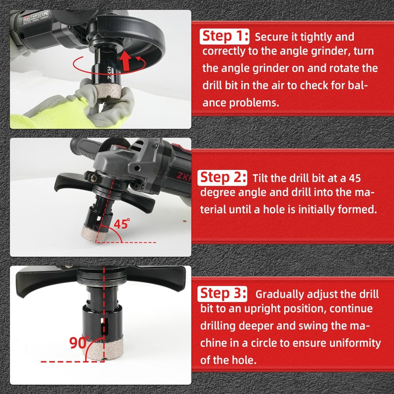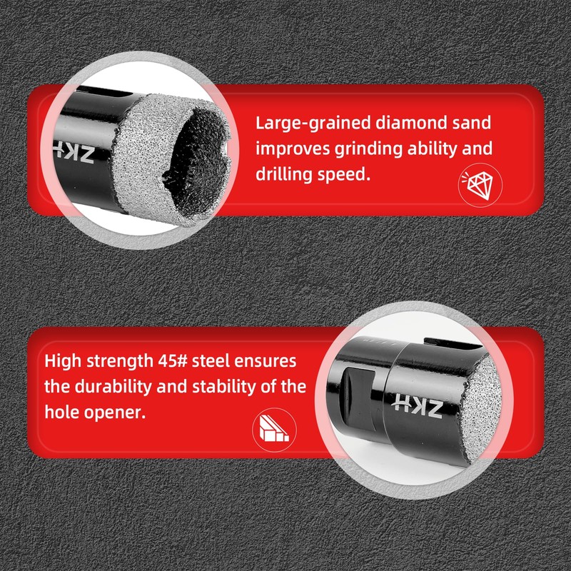 - 【Clean Drilling】The grooves on the side of the diamond drill bit will remove debris more efficiently during the drilling process, helping to keep the drill hole clean and avoiding overheating or damage to the diamond drill bit