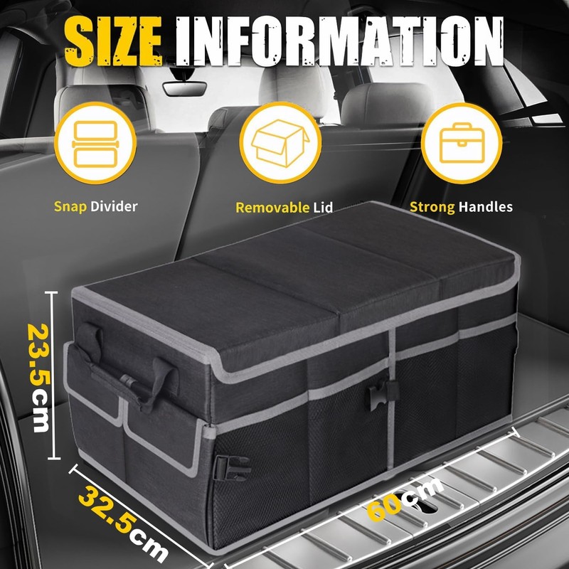 • 【ANTI-SLIP DESIGN】: Car boot organizer storage has spacious compartments and anti slip bottom, you never need to worry about this portable trunk organizer moving while on the go or breaking!