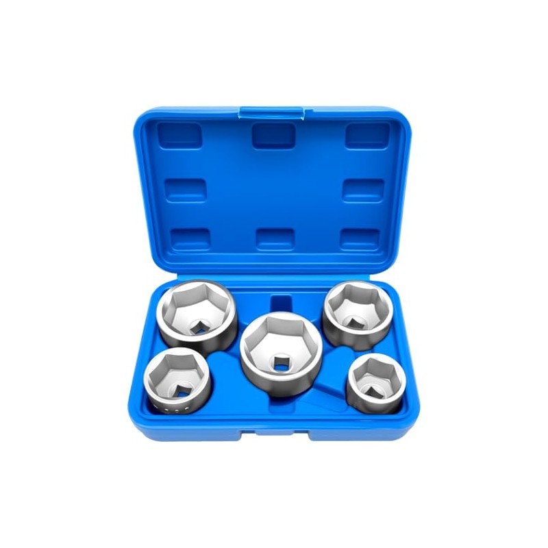 ZKTOOL 5 Pieces 3/8" Drive Low Profile Oil Filter Socket Set, Oil Filter Cap Remover and Installer Tool Set, 6 Point, 24mm 27mm, 29mm, 32mm, 36mm