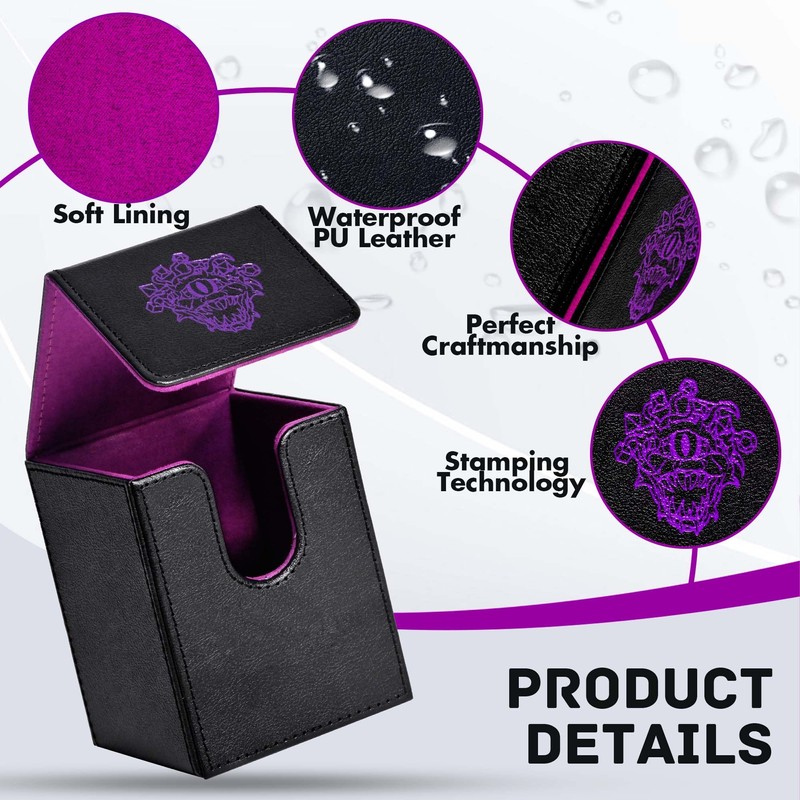 ZLCA Card Deck Box for MTG Cards with 2 Dividers, PU Leather TCG Card Deck Case Holder for Magic Commander Yugioh(Black&Purple,Eye Demon)