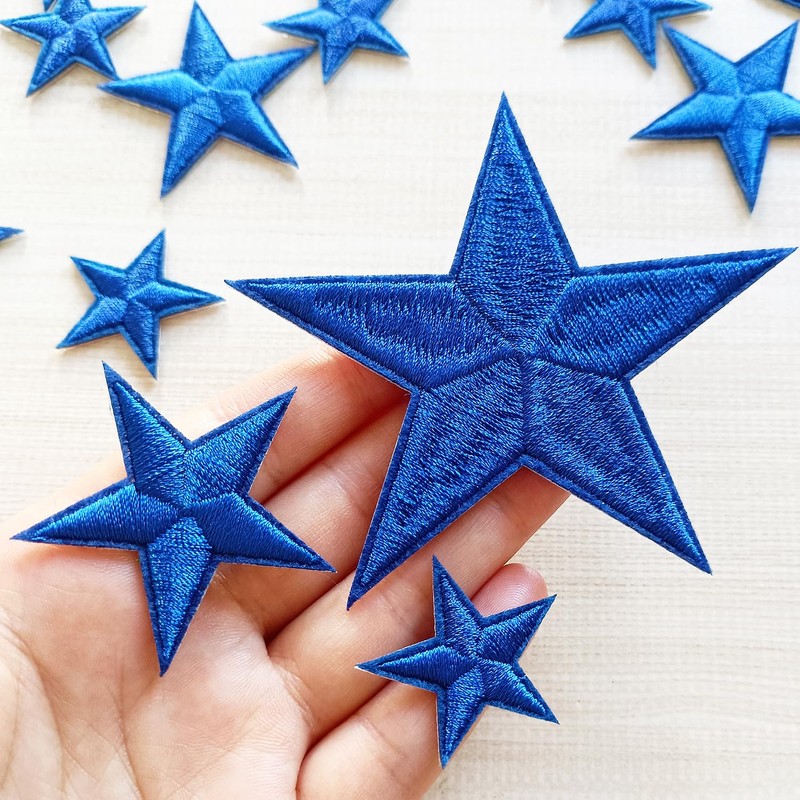 Zlettery 30pcs Blue Star Iron on Patches, 3 Sizes Star Embroidered Patches for Clothing, Jackets, Hats,Backpacks, Jeans
