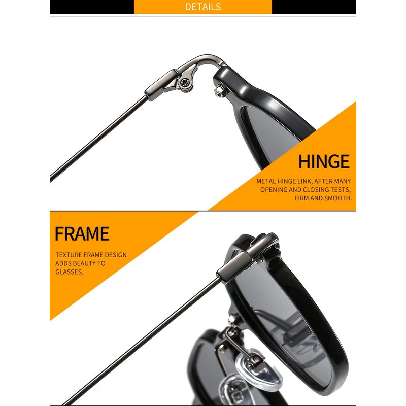 - Una variedad de opciones de color :se puede elegir entre una variedad de opciones de color, ligero y fácil de usar, adecuado para su estilo personal. La combinación perfecta de marcos y lentes es completamente diferente de las gafas de sol normales. Resistente a los arañazos, durable y fácil de limpiar. Al mismo tiempo, las lentes de alta definición le permiten observar mejor el paisaje bajo el sol, asegurando una visión clara y una visión más natural.
