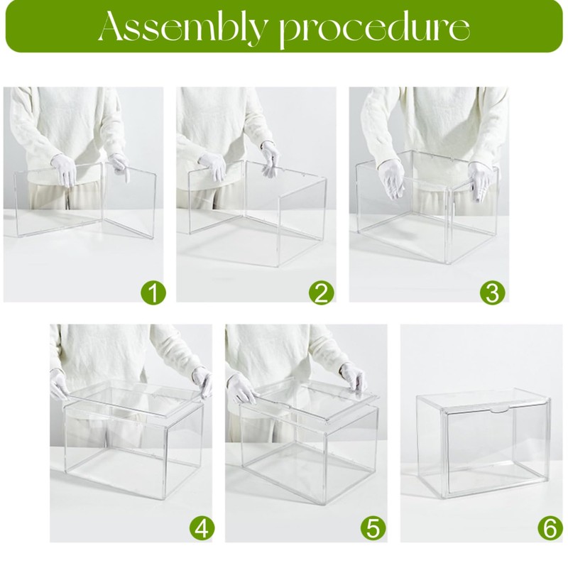 - ADJUSTABLE PARTITION DESIGN: The entire space can be used as a display. Or one division boards and 3 slots allow you to flexibly divide the space in the big clear boxes, make two smaller spaces for display. Store shoes, high heels,makeup, glasses, wallets,and so on, saving space for your wardrobe, dresser and desk