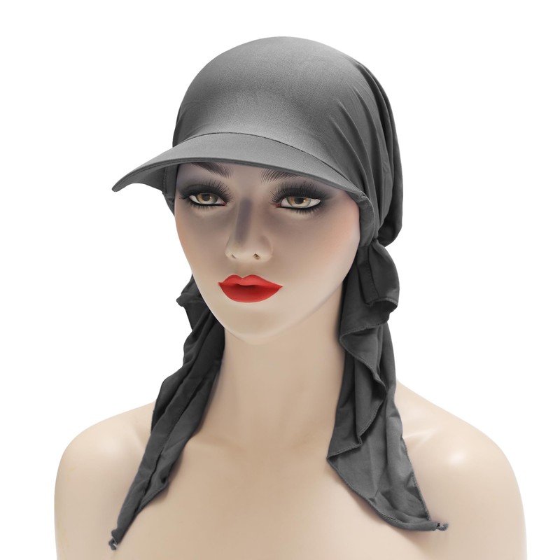 ZLYC Women's Summer Chemo Headwear with Brim Visor Pre-Tied Lightweight Beanie, Solid Grey