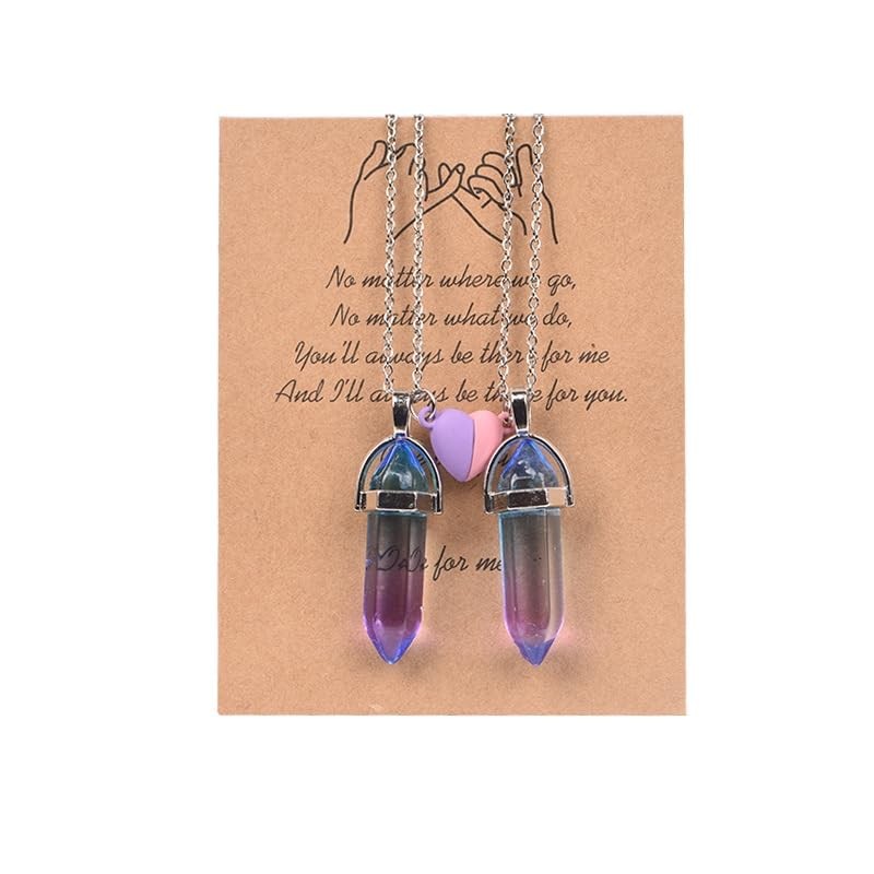 - Material - The crystal matching heart necklaces are made of natural stone and quality alloy.