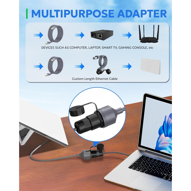 - 【IP68 Waterproof】IP68 Waterproof design suitable for indoor and outdoor use. This Starlink Ethernet Adapter includes a waterproof kit for standard Ethernet cables, designed to connect with a female RJ45 adapter. Once connected, both the female and male ends are fully waterproof, protecting your network components from moisture and dirt, ensuring reliable connections.