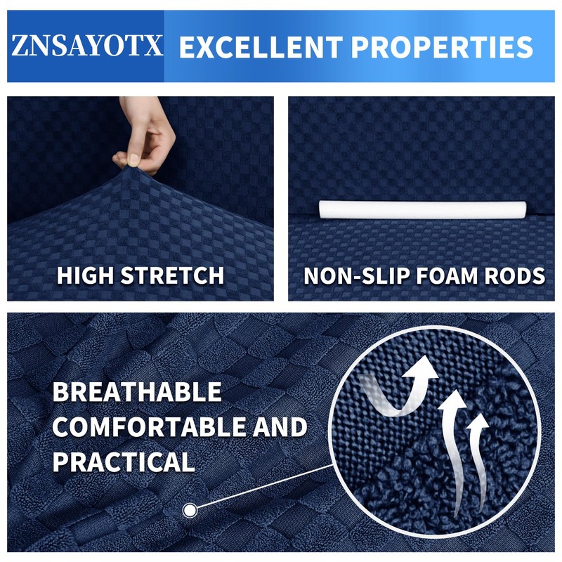 - Premium Fabric - ZNSAYOTX high elastic jacquard couch covers are constructed by 85% polyester and 15% spandex material. The premium fabric makes the stretch sofa covers soft, comfortable, elastic, skin friendly, wrinkle-free and durable. And the couch slipcovers are not easily pilling and fading, can be used for years. The 1 piece sofa slipcover for living room with fashionable and delicate jacquard checkers pattern can give your living room a new fashion decor