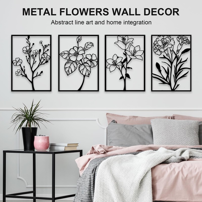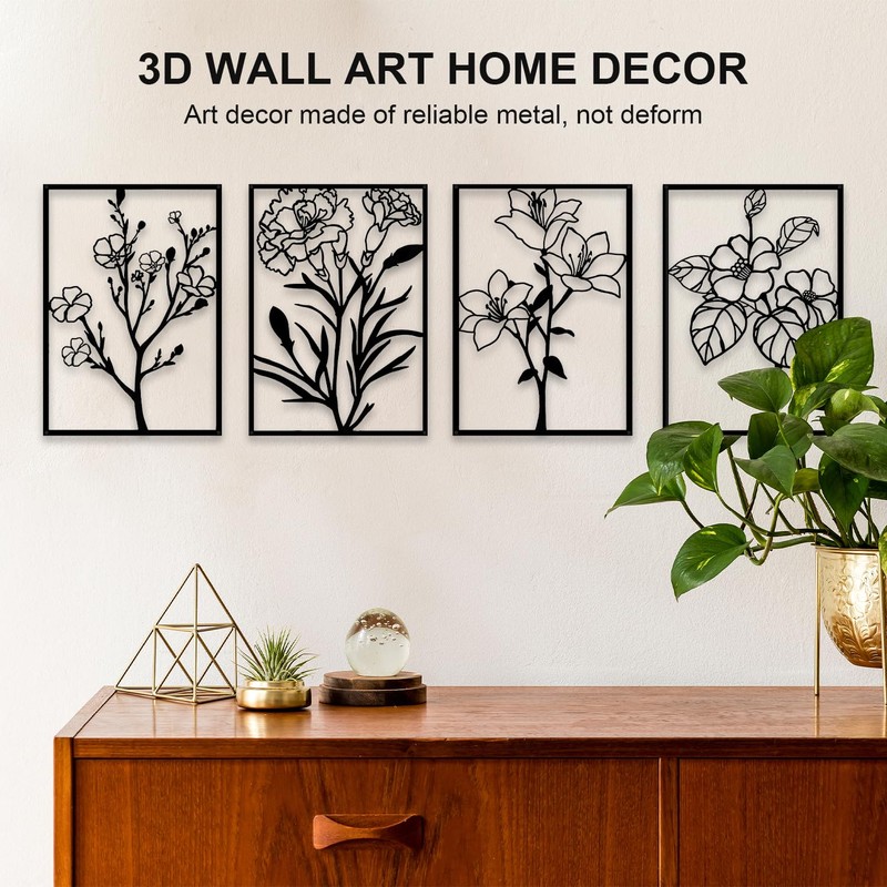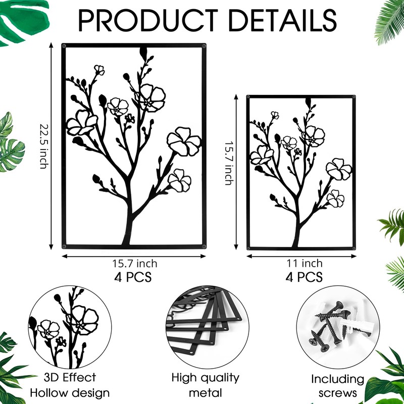 - SIZE: Set includes modern metal flowers wall decor art of 4 different, single size small is 11 x 15.7 inches / large 15.7 x 22.5 inches, perfectly match your other wall decorations.