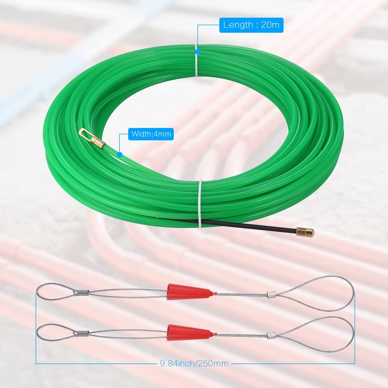 Zocipro 20M Fish Tape Wire Puller Through Wall, Cable Running Puller Rods, Electrical Wire Threader Puller with 2 Metal Lock Wires for Communication Cable, Wall, Floor Duct (Width 4mm)