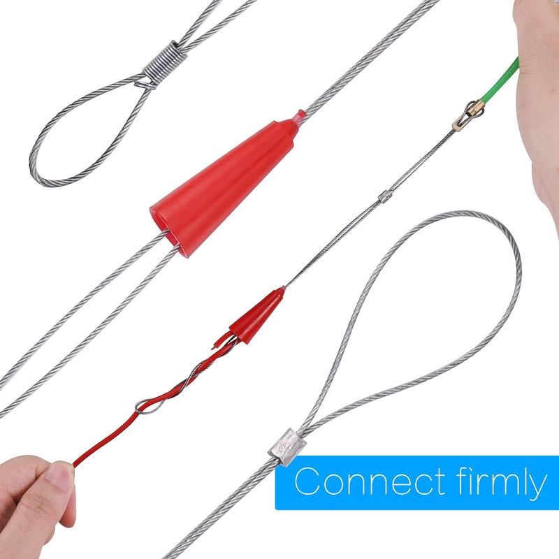 • 【Metal Lock Wires】The fishing tape comes with 2 metal locking lines. One side is connected with wire, the red line cap can prevent wire disconnect when pull it. Another side is connected with fish tape, which makes the wire and fish tape connect firmly.