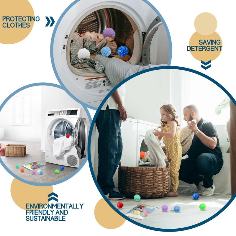 3.Reusable and durable - Unlike other products, our energy saving dryer balls are made of high quality silicone, which can be washed and reused many times, speeding up the washing and drying process and saving you a lot of time in drying clothes.