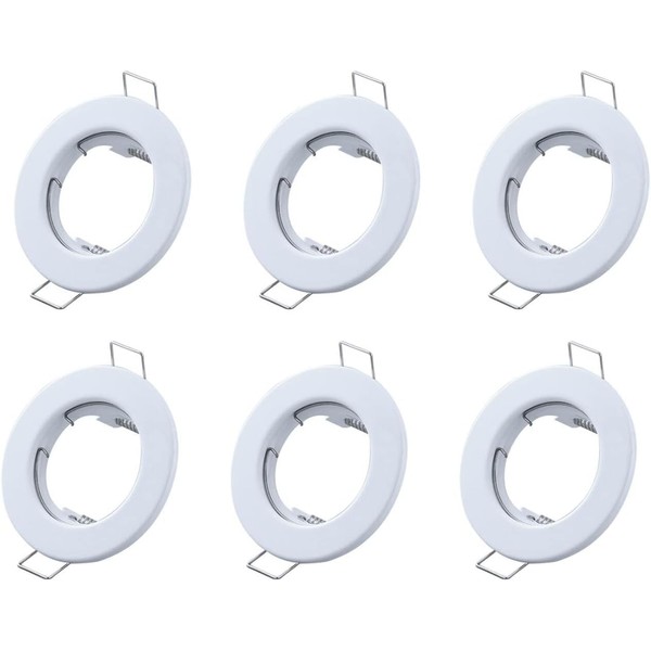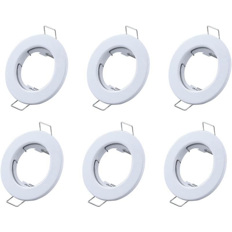 Zodazoqa Set of 6 Recessed Light Frames, Ceiling Mounting Frame, Recessed Spotlight Set, Mounting Frames in Aluminium (LED/Halogen/GU10/MR16/PAR16/50 mm) (White)