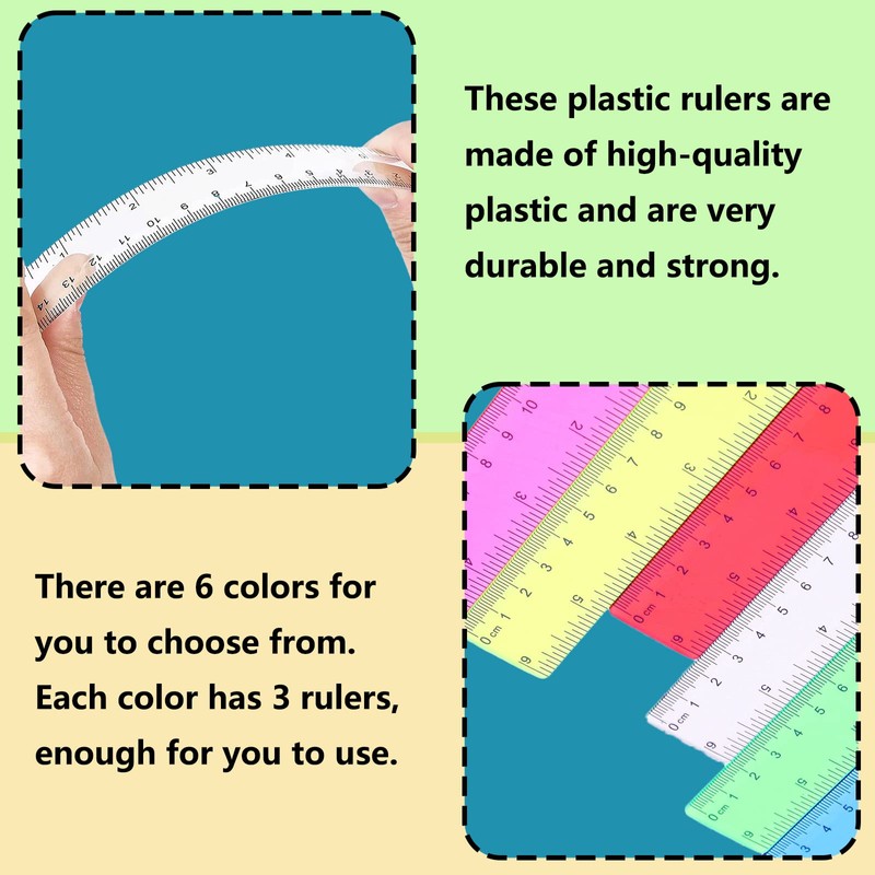 | Color: | Pack of 18 coloured 15 cm rulers |
