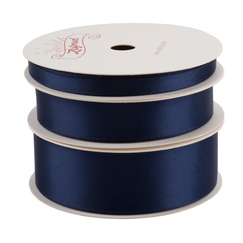 [Zofrud] Navy Double Face Satin Ribbon 3 Rolls Set - Total 27 Meters (6mm Wide, 16mm Wide, 25mm Width x 9M) - Perfect for Crafts, Gift Wrapping, Weddings