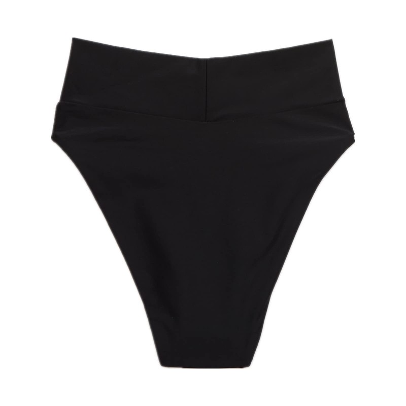 ZOHAMUNG Womens' Black Crossover High Cut V Waisted Cheeky Bikini Bottoms(XL)