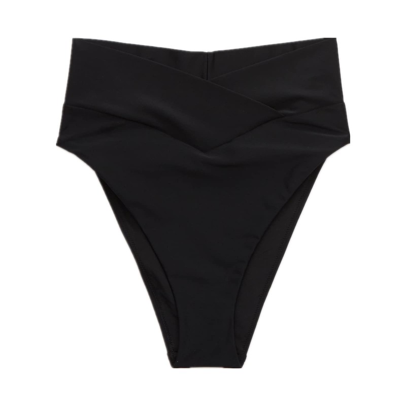 - V crossover waistband for visual waist slimming.These sexy and flattering bikini bottoms are the perfect way to show off your curves. The V crossover waistband is sure to make you look your best