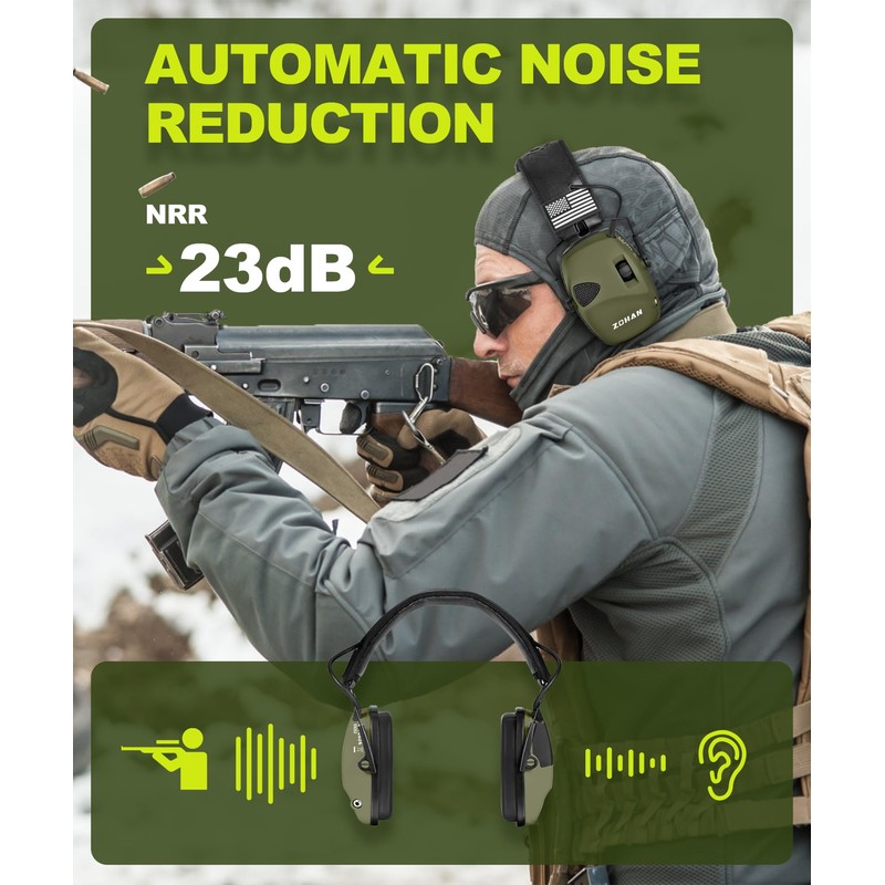 ZOHAN UPGRATED EM054 Electronic Shooting Ear Protection with 5 Replaceable Magic Stickers