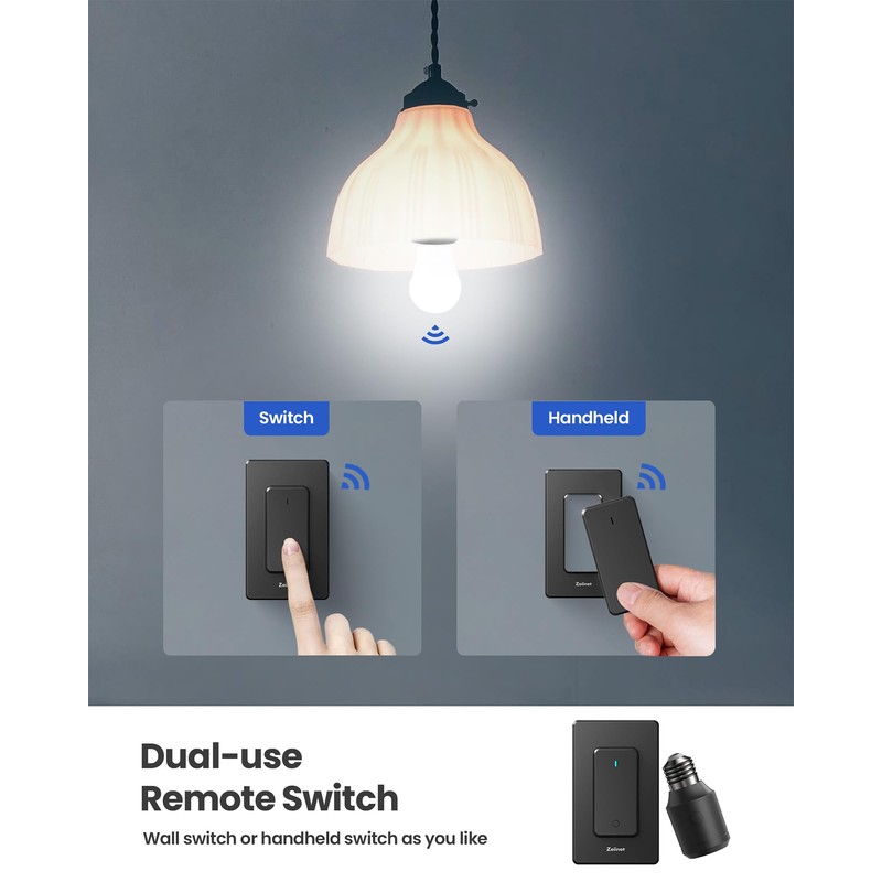 - FLEXIBLE DESIGN: Remotes are also wall switches; Buckle design allows you to remove the remote switch from the plate, or stick it to a wall with tape as a wall switch; Convenient for the elderly, pregnant women and disabled people; Choose what works for you
