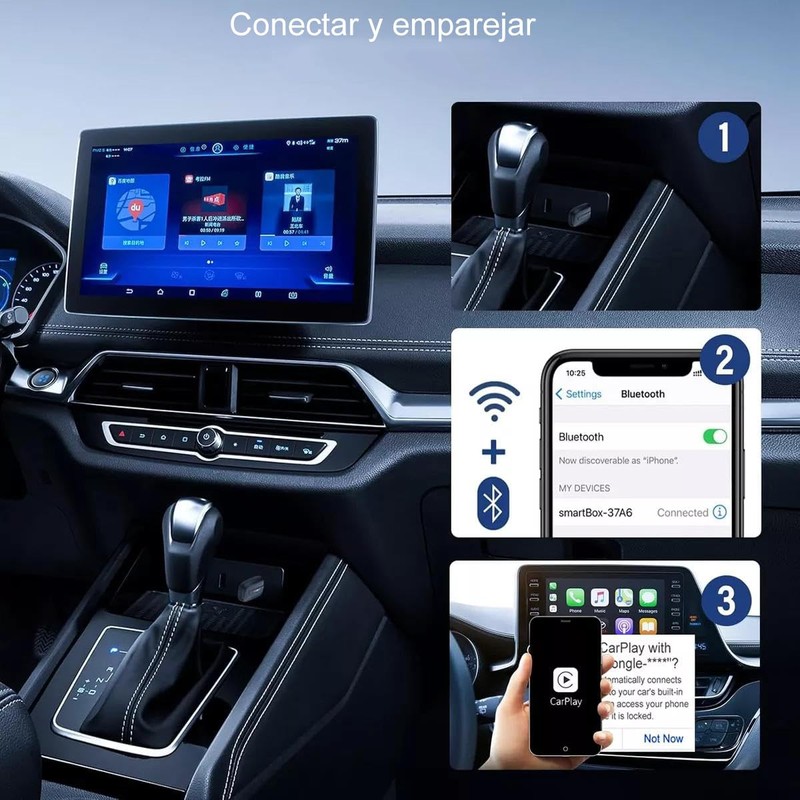 - 【Disfruta de la experiencia inalámbrica de CarPlay】. Si su automóvil admite CarPlay por cable, nuestro adaptador es su mejor opción para experimentar CarPlay inalámbrico. Disfrute de un uso más suave que mejora cada conducción segura. Puede navegación GPS, reproducir música, tomar llamadas y manejar mensajes sin esfuerzo a través de Siri, pantalla táctil, botones o perillas, haciendo que la conducción enfocada sea realmente alcanzable. Ahora conectado sin problemas a través de nuestra señal inalámbrica. No es necesario que cambie sus hábitos, simplemente disfrute de un interior del coche más limpio y sin cables
