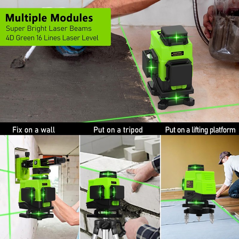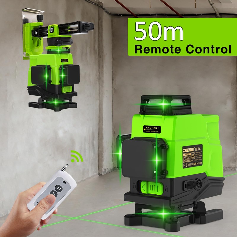 Zokoun Line Laser Level, Floor and Wall Powerful Green 16 Lines, 360 Rotary Self-leveling Laser Level Horizontal & Vertical Cross With Wireless Control 4D Laser Level with Li-ion Battery (IE16)