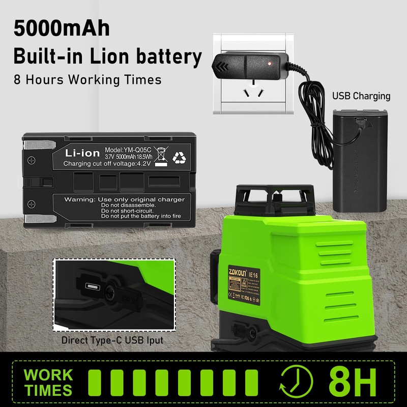 - 【HIGH VISIBLE GREEN LASER】Class II Green cross laser line, < 1Mw. Zokoun's IE16 green beam laser use lastest Germany technology, higher visibility, eye friendly for all-new experience. Bright green-beam laser up to 2X brighter than standard red beams, which improves your work efficiency.