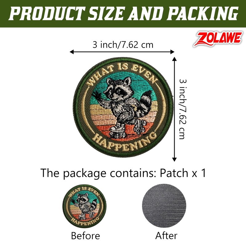 Zolawe What Is Even Happening Raccoon Roller Skating Hook and Loop Patch, 3 I...