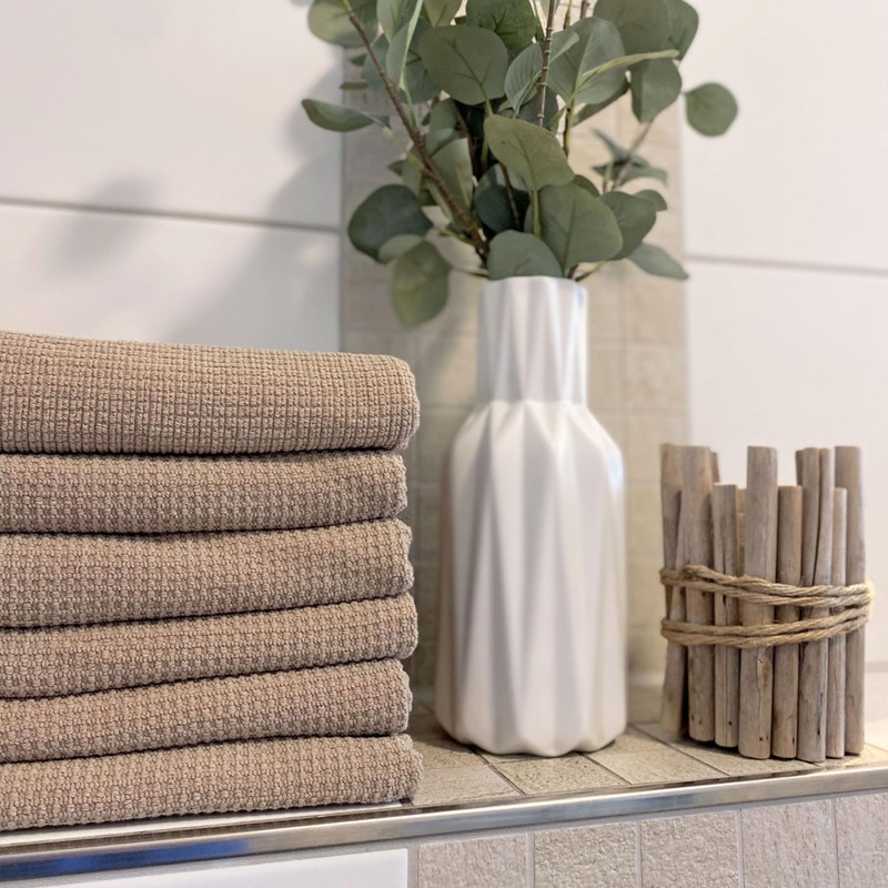 - Elegant design - Enjoy a pleasant massage effect thanks to the delicate waffle pattern of the cotton towels. These are available in the three harmonious colours white, beige and grey.
