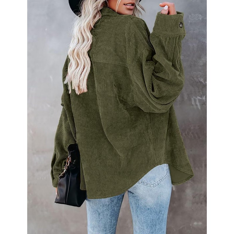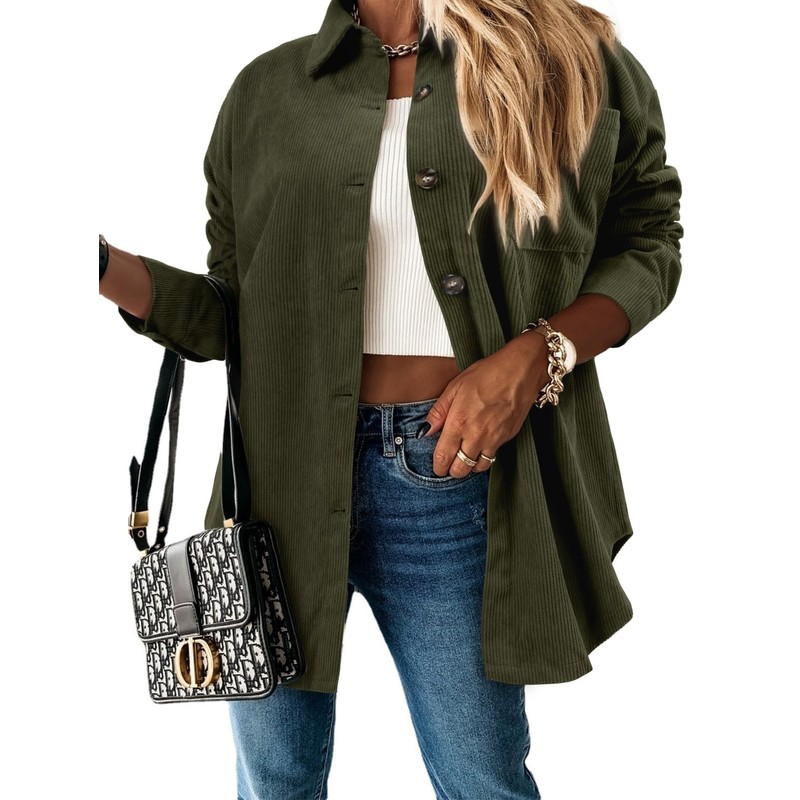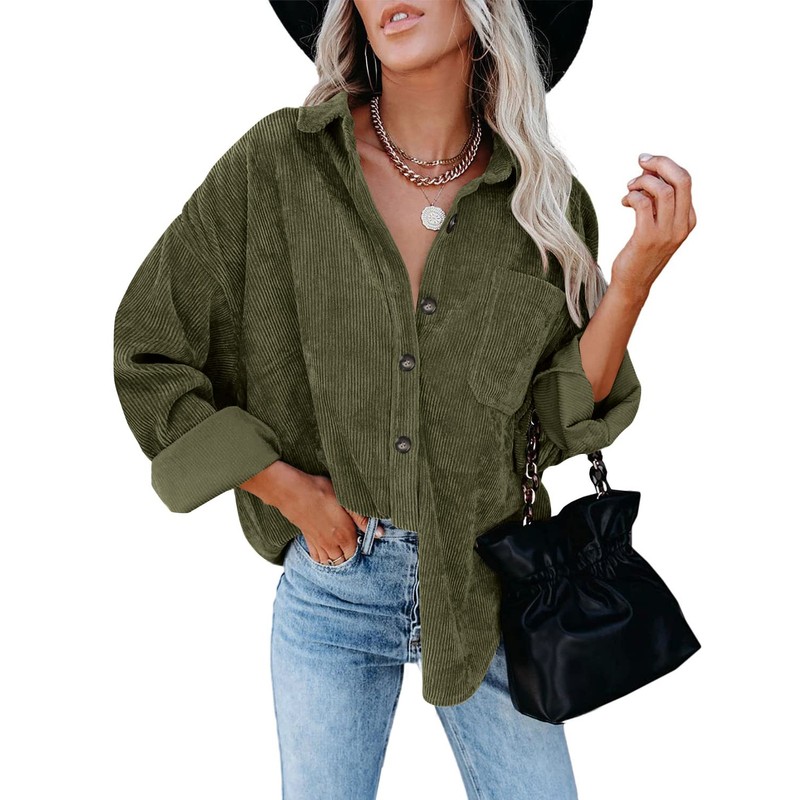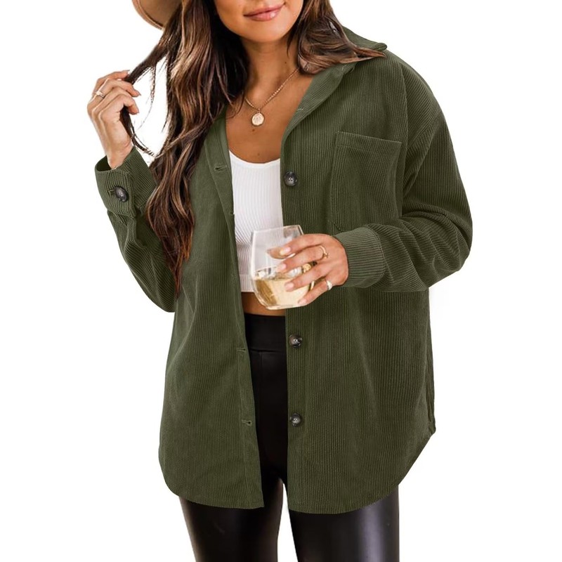 ZOLUCKY Women's Casual Long Sleeve Shacket Jackets Oversized Button Down Shirts Tops Fall Corduroy Shacket, Army Green Large