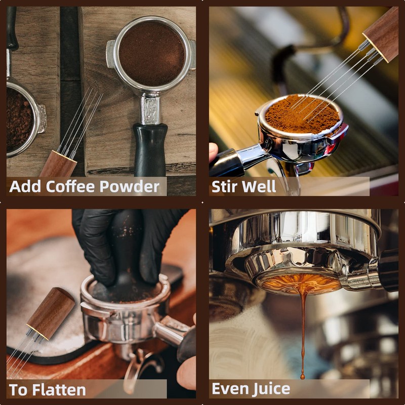 - Even Espresso Extraction - This coffee stirrer uses 5 fine 0.4mm needles which help to distribute the coffee evenly in the filter when the barista is making the coffee to promote a more even extraction and better espresso. Eliminates clumping and improves consistency.