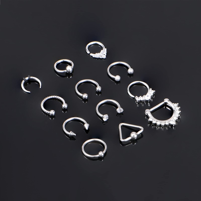 - Septum piercing jewellery set: with one order you will receive 12 septum clicker rings and horseshoe rings in different styles