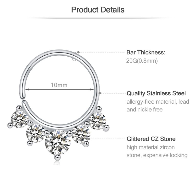 - Septum Jewelry Size: Bar Thickness: 16g (1.2mm); Inner Diameter: 8MM, 10Mm; Color Silver