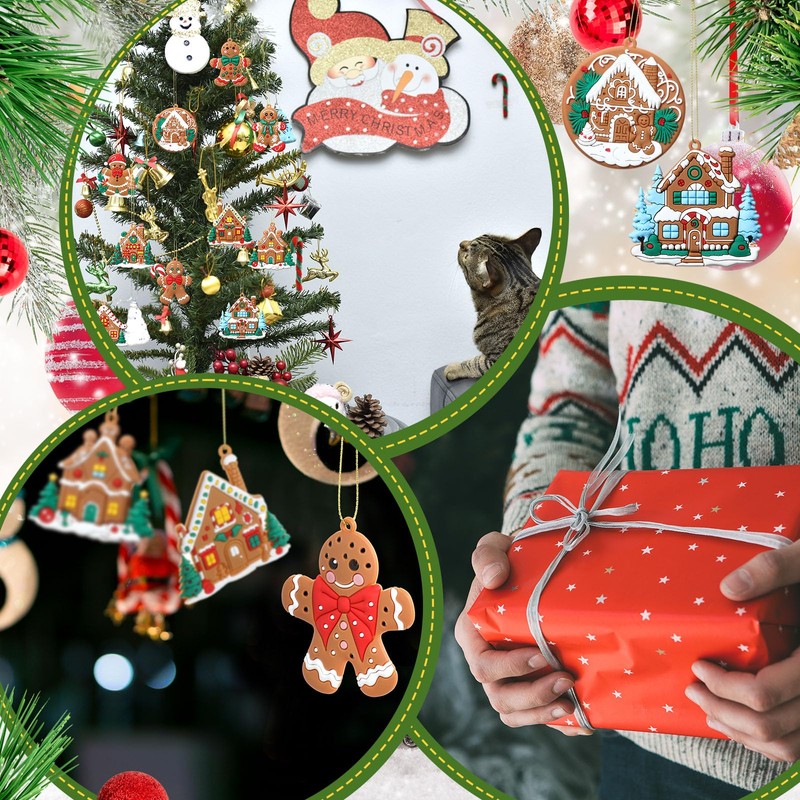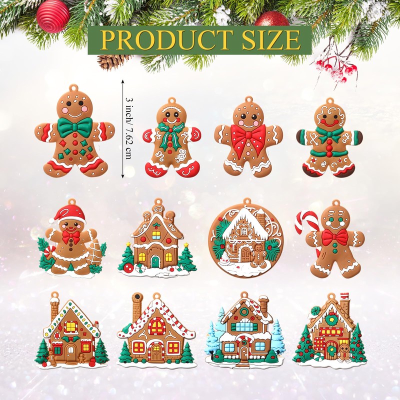 - Valuable Package: you will get 24 pcs gingerbread themed Christmas ornaments, each with a golden string for easy hanging in 12 different gingerbread house themed pattern designs, with 6 pcs gingerbread house and 6 pcs gingerbread men